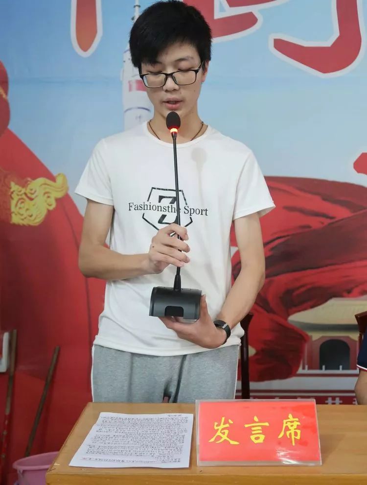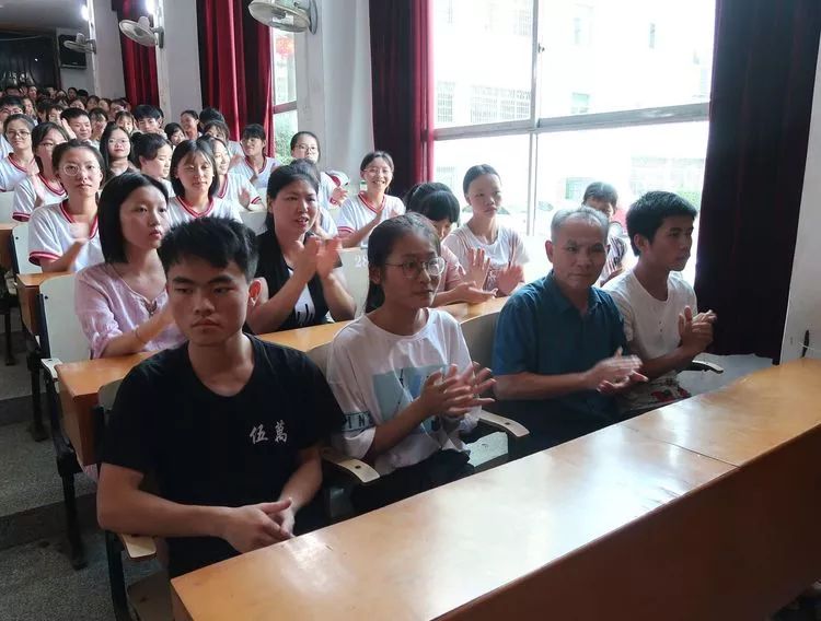 2020届学生代表罗来胜发言,他对学长学姐们取得的优异成绩表示祝贺和敬佩。他代表2020届全体同学发出庄重承诺:不负韶光,脚踏实地,发扬学长学姐们拼搏精神,力争明年高考取得更加辉煌的成绩。