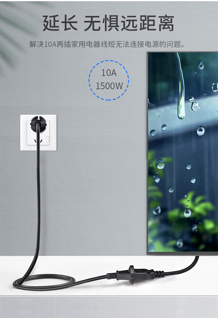 输入插头:国标10A G10直头,输出孔:IEC C13 线径:3*1.5平方 线长:3米 黑色
